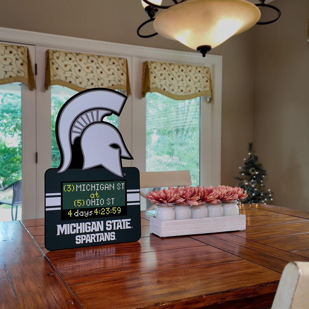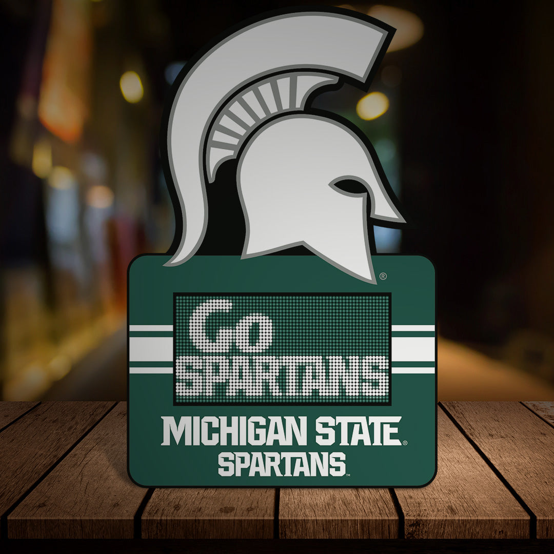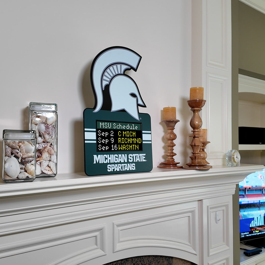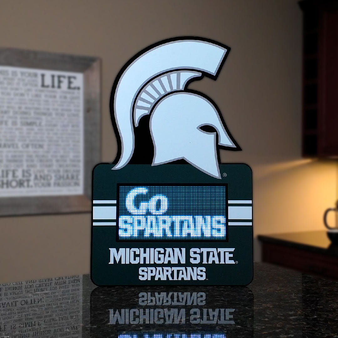 The Michigan State Spartans TeamTicker is the ultimate addition for anyone wanting to showcase their team pride. Its custom graphics and easy-to-hang design make it the perfect piece to display in your home, fan cave, game room, dorm room or office. The digital LED display provides you with a unique way to stay connected to the latest team and player information. Get one for yourself and one as the perfect gift for that devoted Michigan State Spartans fan.