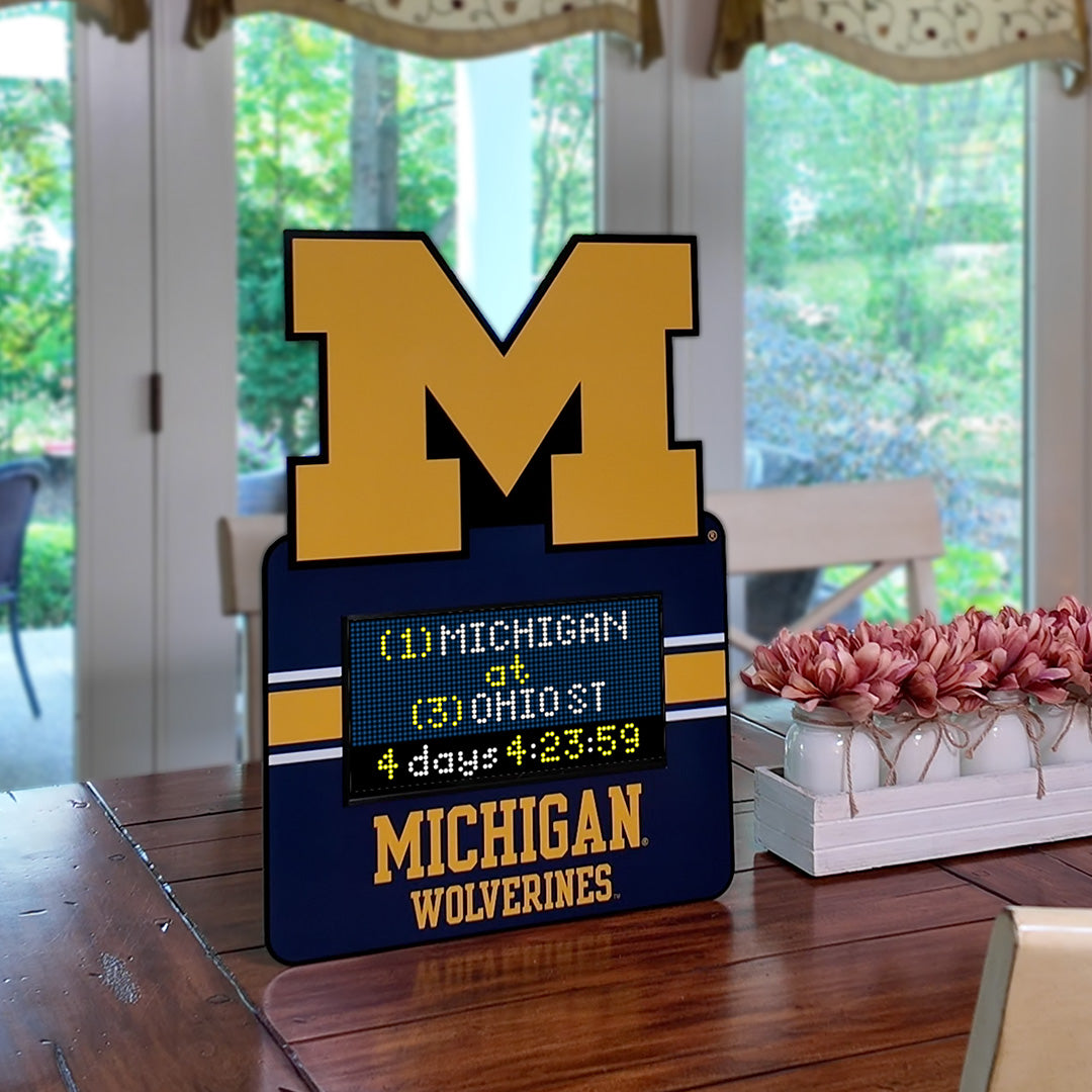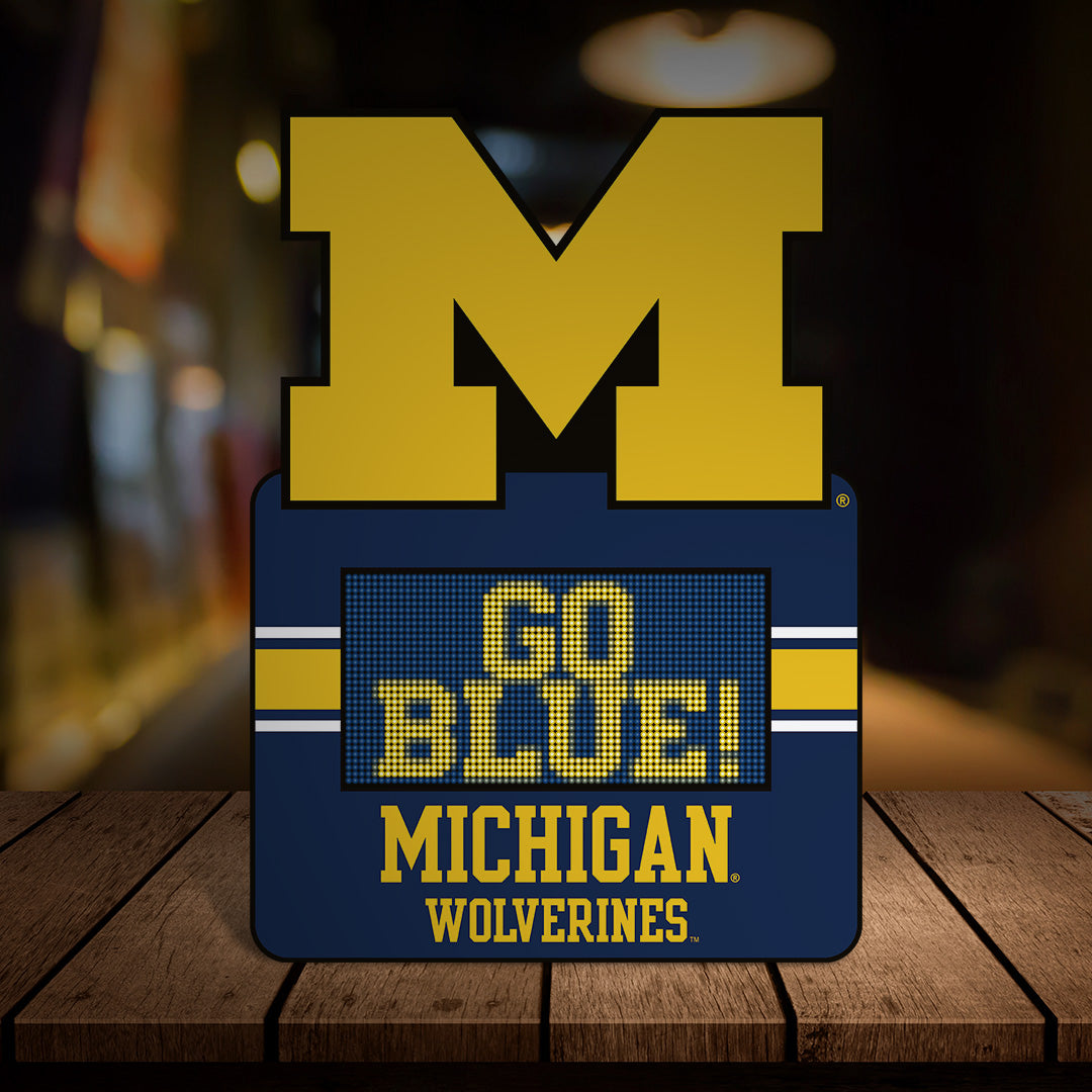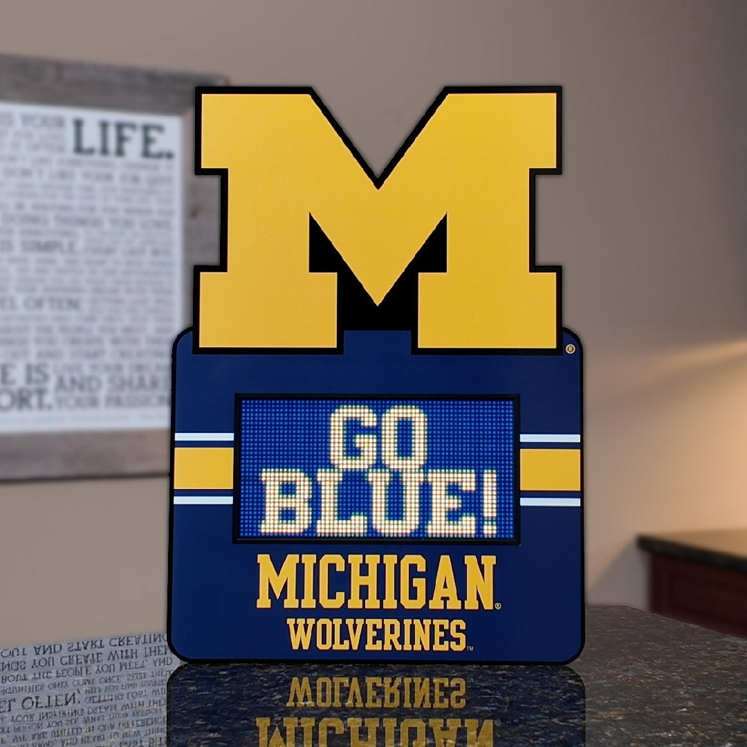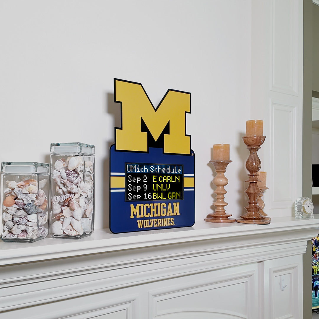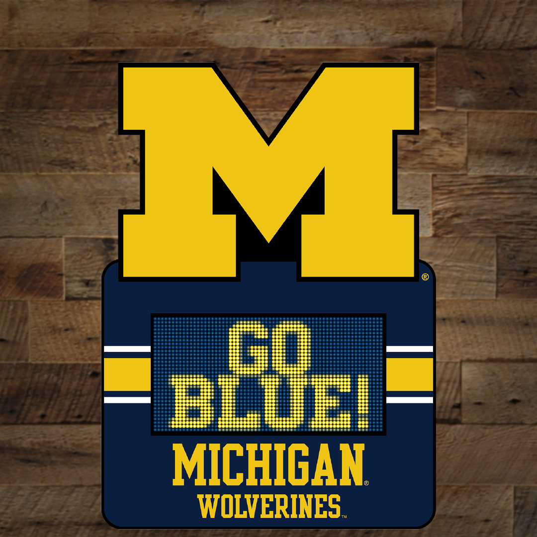 The Michigan Wolverines TeamTicker is the ultimate addition for anyone wanting to showcase their team pride. Its custom graphics and easy-to-hang design make it the perfect piece to display in your home, fan cave, game room, dorm room or office. The digital LED display provides you with a unique way to stay connected to the latest team and player information. Get one for yourself and one as the perfect gift for that devoted Wolverines fan.