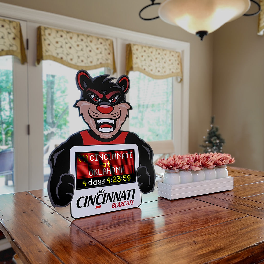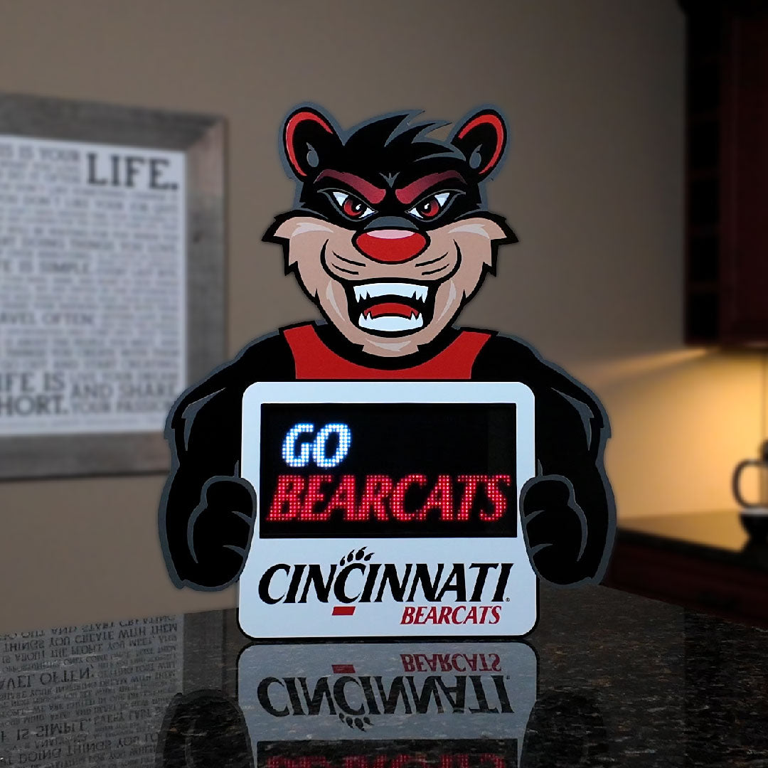 The Cincinnati Bearcats TeamTicker is the ultimate addition for anyone wanting to showcase their team pride. Its custom graphics and easy-to-hang design make it the perfect piece to display in your home, fan cave, game room, dorm room or office. The digital LED display provides you with a unique way to stay connected to the latest team and player information. Get one for yourself and one as the perfect gift for that devoted Bearcats fan.