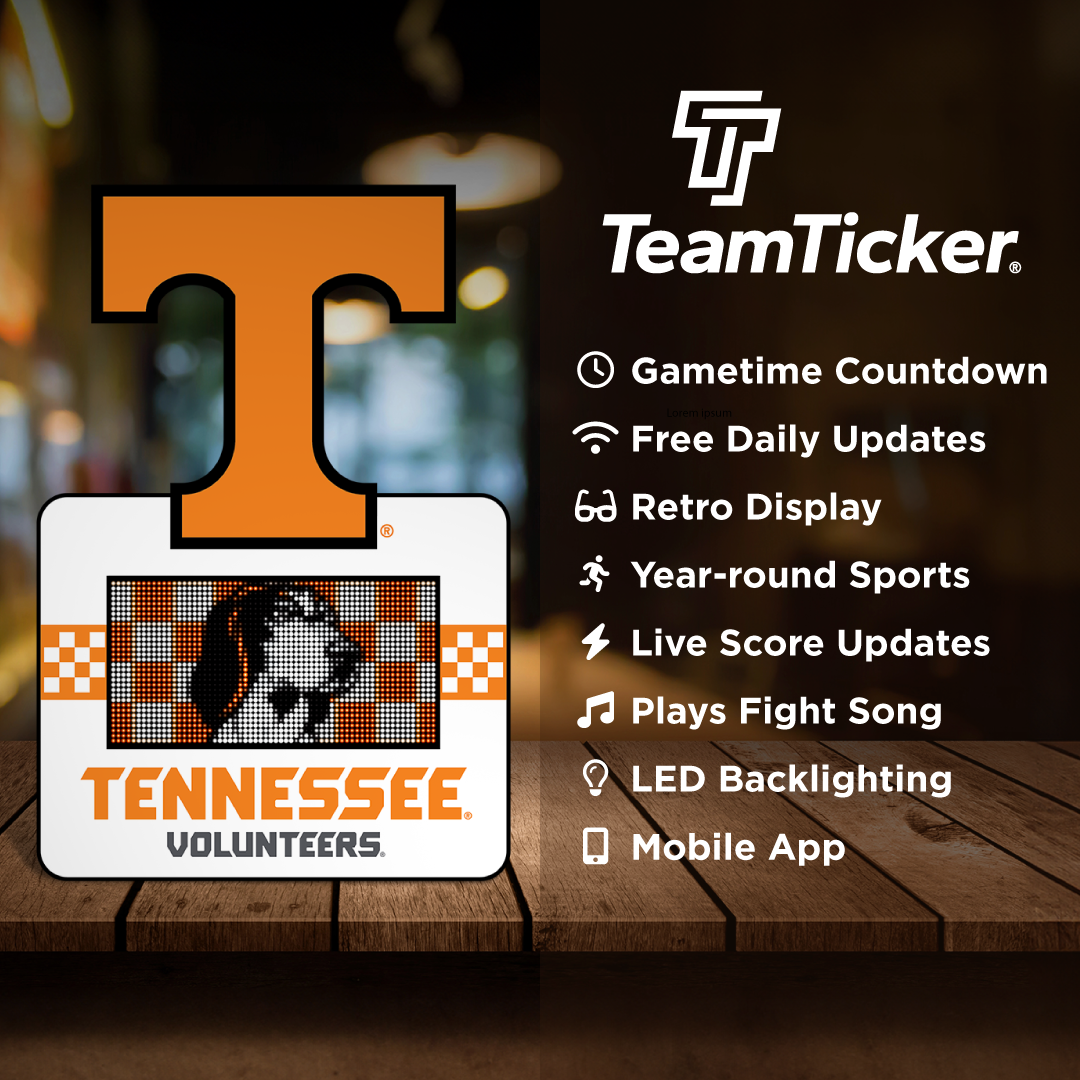 Unit price perThe Tennessee Volunteers TeamTicker is the ultimate addition for anyone wanting to showcase their team pride. Its custom graphics and easy-to-hang design make it the perfect piece to display in your home, fan cave, game room, dorm room or office. The digital LED display provides you with a unique way to stay connected to the latest team and player information. Get one for yourself and one as the perfect gift for that devoted Volunteers fan.